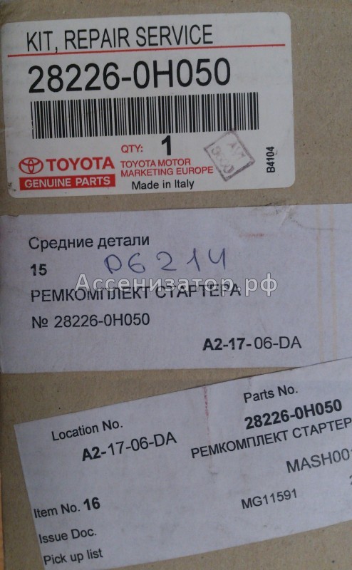Комплект ремонтный стартера 282260H050 TOYOTA AVENSIS